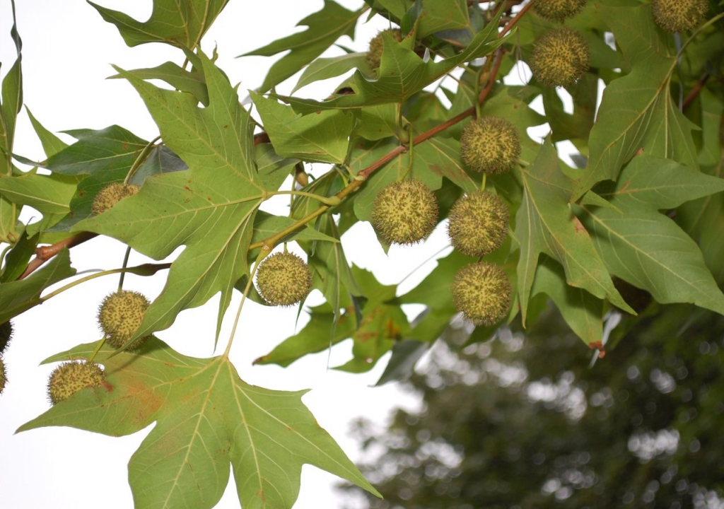Ik ben een grote boom met een breed ovale kroon. Op oude leeftijd gaan mijn takken doorhangen waardoor een ronde kroon ontstaat. Mijn barstkleur is geel en de groene, soms grijze, schors bladdert in kleine gedeeltes af waardoor een vlekkerig geheel ontstaat. Mijn vruchten zijn eerst groen, maar kleuren naar bruin.