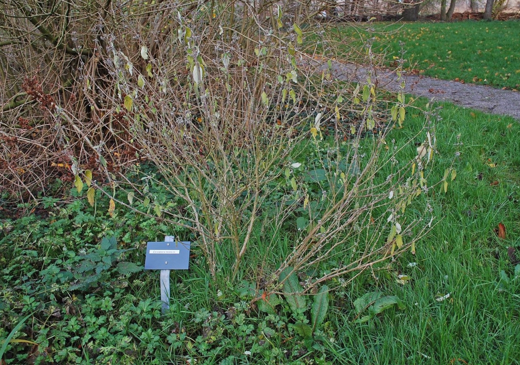 Ik ben een klein bladverliezend struikje tot 1,25 meter hoog en breed. Ik bloei met zoet geurende hemelsblauwe bloempluimen. Mijn grijsgroene bladeren ruiken naar munt als men ze aanraakt.