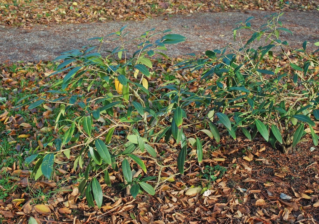 Ik word 1,5 tot 2 meter hoog na 10 jaar. Mijn bladeren zijn donkergroen, glanzend, leerachtig, fijngetand en elliptisch tot eivormig. Ik bloei met rijkelijk veel kleine witte, opvallende, zoet geurende bloempjes die in trossen staan. (felle aangename geur ). Soms draag ik in de herfst kleine blauwzwarte vruchtjes.